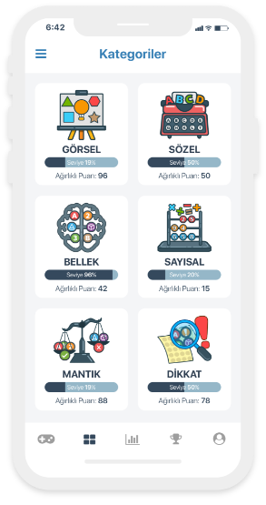 GriCeviz Yapay Zeka Algoritması tarafından kullanılan kişiye özel öğrenme eğrisi sayesinde; kullanıcıların en yüksek kazanım elde edebilecekleri zorluk seviyelerindeki oyunları oynamaları mümkün olur. Her kullanıcı için özel olarak yapılan bu değerlendirme ile doğru zamanda seviye atlatılması sağlanır.